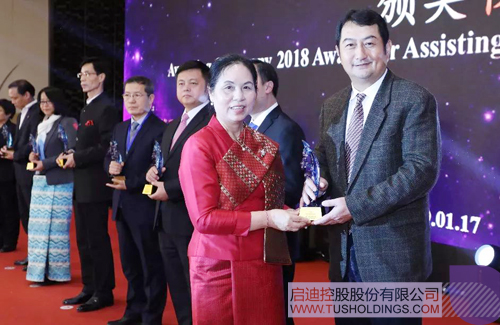 現(xiàn)場(chǎng)頒發(fā)的“2018年助力中國(guó)—東盟企業(yè)合作獎(jiǎng)”由中國(guó)—東盟商務(wù)理事會(huì)、東盟北京委員會(huì)及東盟十國(guó)駐華大使館共同在中國(guó)和東盟優(yōu)秀代表中評(píng)選產(chǎn)生,老撾駐華大使萬迪·布達(dá)薩馮為包括廣西啟迪、柬埔寨王國(guó)駐華大使館公使銜商務(wù)參贊鐵弓、緬甸駐華大使館商務(wù)參贊杜丹達(dá)凱、越南駐華大使館商務(wù)參贊陶越英、中國(guó)電力企業(yè)聯(lián)合會(huì)、深圳廣田集團(tuán)股份有限公司等十個(gè)獲獎(jiǎng)個(gè)人和單位代表頒獎(jiǎng)。