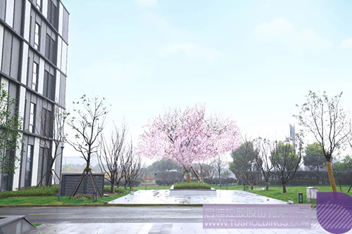 步入二期現(xiàn)場,映入眼簾的是生機勃勃的盎然綠意,紫荊花長廊更是自成一景,為園區(qū)辦公帶來大自然的清新與靈氣。
