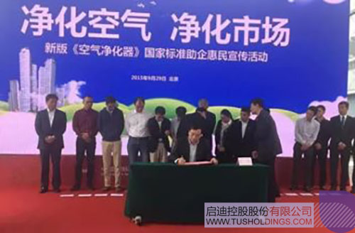 2015年9月29日,亞都董事長龍林作為廠商代表參加空氣凈化器新國標(biāo)助企惠民發(fā)布會,并在會上簽訂了“踐行空氣凈化器新國標(biāo)倡議書”,這是亞都人對新國標(biāo)實施的承諾。