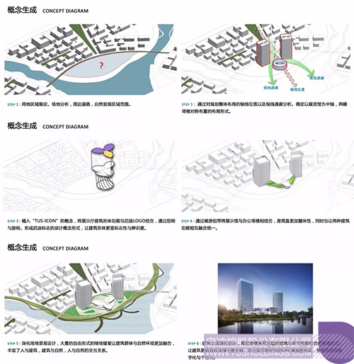 建筑作為環(huán)境形態(tài)構(gòu)成的重要因素必定要承載文化的使命。展示中心立意突出清華文化,嚴(yán)謹(jǐn)而富有內(nèi)涵。結(jié)合清華科技園與啟迪文化,提出“TUS-ICON”的設(shè)計(jì)理念構(gòu)思。通過對啟迪企業(yè)特質(zhì)和文化的提煉,以及建筑形體的演繹來詮釋啟迪控股從“三螺旋模式”到“集群式創(chuàng)新”的理論實(shí)踐。