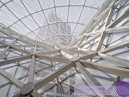 2、在建筑確定的形體空間下,結(jié)構(gòu)專業(yè)選擇空間網(wǎng)架結(jié)構(gòu)為實(shí)施方向,并估算大致的空間桿件連接尺寸。通過偏移建筑外表皮,在參數(shù)化條件下自動生成結(jié)構(gòu)空間網(wǎng)架線性模型,結(jié)構(gòu)專業(yè)以此模型為基礎(chǔ),進(jìn)行結(jié)構(gòu)計(jì)算,確定最終的網(wǎng)架關(guān)系及構(gòu)件尺寸。同時(shí)幕墻專業(yè)確定幕墻形式,提供經(jīng)濟(jì)可行的板塊分割控制尺度,通過參數(shù)化工具,生成同建筑形體及結(jié)構(gòu)網(wǎng)架線相適宜的板幕墻板塊分割,幕墻專業(yè)在此基礎(chǔ)上深化各板塊的構(gòu)造做法及連接關(guān)系。在完成建筑方案及各專業(yè)深化后,在Revit中進(jìn)行項(xiàng)目施工圖的設(shè)計(jì)工作,以建筑幕墻、結(jié)構(gòu)、機(jī)電三個(gè)中心模型通過鏈接的方式共同實(shí)施,以此落實(shí)項(xiàng)目的設(shè)計(jì)構(gòu)思。