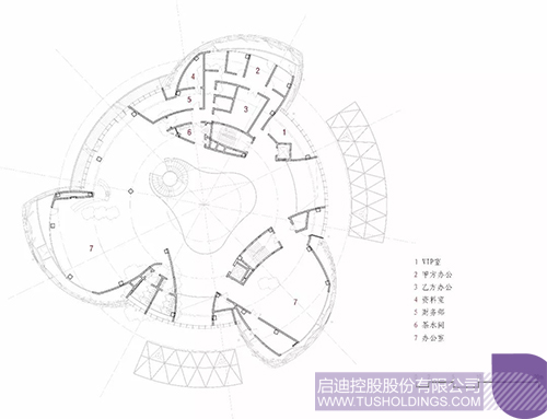 2、建筑內(nèi)部空間圍繞核心中庭予以布置