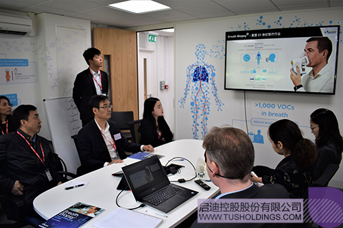 金勤獻院長一行與Owlstone、Biosceptre兩家劍橋的生命科技研發企業的負責人進行交流,Owlstone是一家從事呼吸活檢技術全球領先的創新研發企業,獲得多家知名風險投資青睞,目前與上海仁濟醫院合作開展肺癌早期檢測的臨床試驗;Biosceptre專注于開發針對nfP2X 7的下一代癌癥治療方案,目前已完成臨床I期試驗,該公司在獲得啟迪投資后正積極探索落地中國的方案。隨后,金勤獻院長介紹了清華大學在醫學領域強大的學術資源與研發能力,同時介紹了全球健康藥物研發中心與荷塘資本,他表示清華大學已經建立起具備全方位創新服務能力的成果轉化體系,期待與世界前沿的生命科技研發企業在聯合研發、市場拓展、股權投資等開展多層次合作。