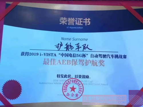 重慶啟迪參展企業河南護航在 i-VISTA"中國5G電信杯"自動駕駛汽車挑戰賽中榮獲“最佳AEB保駕護航獎”