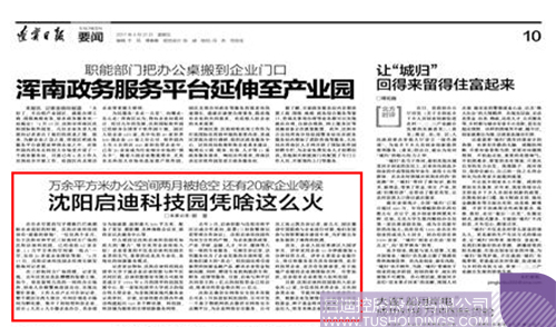 《遼寧日報》2017年04月21日A10版刊文——《萬余平方米辦公空間兩月被搶空還有20家企業等候  啟迪科技園(沈陽)憑啥這么火》
