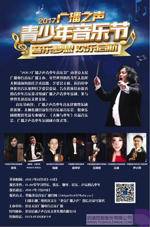 啟迪之聲與北京人民廣播電臺音樂廣播聯袂創辦了國內首個青少年音樂節——“2017廣播之聲青少年音樂節”,音樂節由獲格萊美獎、享譽世界的傳奇華人指揮大師湯沐海出任藝術總監、藝委會主席,聘請國內外超過100位優秀的音樂家擔任藝委會委員,通過音樂比賽、大師集訓營、駐營音樂家音樂會、《大師與少年》音樂盛典等一系列活動,選拔培養優秀的青少年音樂英才組成樂團,參與世界先進音樂文化交流。