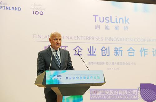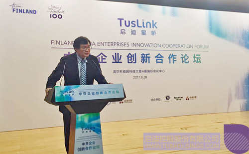 6月28日,值芬蘭共和國總理西皮萊閣下訪問中國之際,芬蘭貿易投資旅游促進總署率芬蘭50余家知名企業和啟迪控股攜手舉辦“TusLink-中芬企業創新合作論壇”,旨在通過TusLink打造眾星互動的國際化創新生態系統。芬蘭經濟與就業部副部長古澤森(Jari Gustafsson),啟迪控股副總裁、啟迪之星董事長張金生出席活動并致辭。