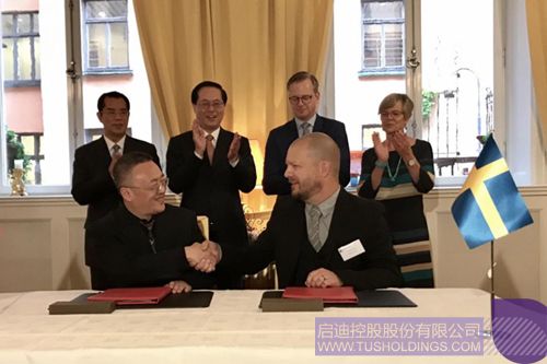 2017年8月30日至31日,浙江省委書記、省人大常委會主任車俊率團在瑞典進行考察訪問。啟迪控股旗下浙江機器人產業(yè)集團作為浙江企業(yè)代表,于31日上午在省委書記車俊與瑞典創(chuàng)新科技大臣丹貝爾、中國駐瑞典大使桂從友、瑞典駐滬總領事林立的共同見證下,與瑞典浣貝爾激光自動化有限公司在瑞典首相府簽約,成立中瑞合資公司并落戶浙江。浙江機器人產業(yè)集團總經理朱春榮與瑞典浣貝尓自動化有限公司創(chuàng)始人兼首席執(zhí)行官華山(Magnus Stjernberg)代表雙方簽署協(xié)議。