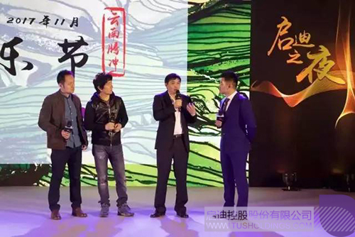 今年4月在北京舉行的“啟迪之夜”現(xiàn)場,啟迪控股高級副總裁、云南啟迪董事長陳禹(右二)與音樂人鄭鈞(左二)共同發(fā)布,今年11月將于云南騰沖舉辦風馬音樂節(jié)