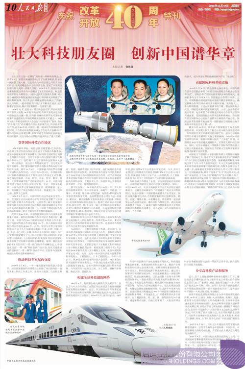 12月19日,人民日報海外版出版發(fā)行《慶祝改革開放40周年特刊》。《壯大科技朋友圈 創(chuàng)新中國譜華章》的專題文章提到:40年間,中國在一輪一輪深化科技體制改革的同時,大力推動形成科技領域全方位對外開放格局,廣建科技創(chuàng)新全球朋友圈,不僅促進了自身科技創(chuàng)新能力的持續(xù)提升,而且為推動世界科技進步作出了重大貢獻。