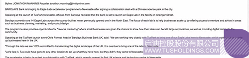 “讓我們迎頭趕上吧,啟迪科技園本來可以帶著它的技術(shù)落戶于英國任何其它地方,但他們沒有,他們來到了紐卡斯?fàn)枴!?br />