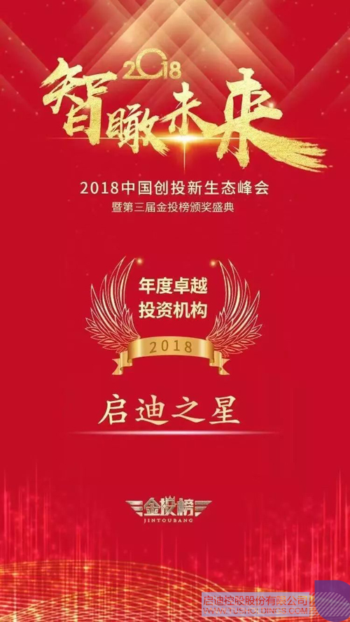 2018年12月,由海南省工業和信息化廳、海口市人民政府主辦,起風集團發起并承辦的第三屆金投榜頒獎盛典在海口市華彩華邑大酒店隆重舉行。啟迪之星榮獲“金投榜·2018年度卓越投資機構Top20”,啟迪之星總經理、主管合伙人劉博榮獲“金投榜·2018年度最受歡迎女性投資人Top10”。