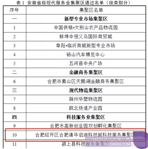 2018年9月,安徽省發改委進行了2018年省級現代服務業集聚區、集聚示范園區及省服務業綜合改革試點公示,經第三方機構的競爭性評選,合肥啟迪科技城獲得省級科技服務業集聚區認定,同時也是經開區首家獲此殊榮的產業園區。