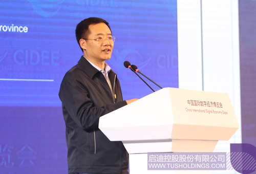 王濟(jì)武董事長(zhǎng)應(yīng)邀出席2019中國(guó)國(guó)際數(shù)字經(jīng)濟(jì)博覽會(huì)開(kāi)幕式,并在當(dāng)天下午舉辦的智能雄安高峰論壇上發(fā)表主旨演講,為雄安新區(qū)智能城市創(chuàng)新聯(lián)合會(huì)揭牌。