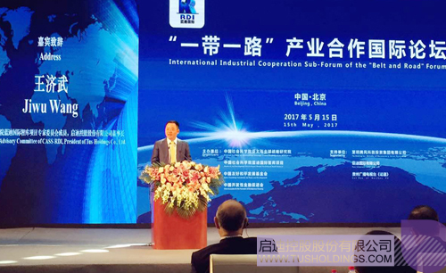 2017年5月15日, “一帶一路”產(chǎn)業(yè)合作國際論壇在京舉行。來自產(chǎn)、學(xué)、研等領(lǐng)域的專家匯聚一堂,共同探討“一帶一路”沿線國家的產(chǎn)業(yè)合作。會(huì)議由全國人大常委會(huì)委員、外事委員會(huì)副主任委員,中國社會(huì)科學(xué)院藍(lán)迪國際智庫項(xiàng)目專家委員會(huì)主席趙白鴿主持。啟迪控股董事長(zhǎng)王濟(jì)武作為中國社會(huì)科學(xué)院藍(lán)迪國際智庫項(xiàng)目專家委員會(huì)成員且唯一企業(yè)代表,在論壇開幕致辭中發(fā)言。來自法國、埃及、印度尼西亞等國的政要和國內(nèi)知名專家學(xué)者參加活動(dòng)。