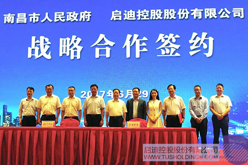 6月29日,啟迪控股董事長王濟武率團訪問江西省。中共中央委員、江西省委書記、省人大常委會主任鹿心社在省行政中心會見王濟武董事長一行。同日,在江西省委常委、南昌市委書記殷美根,南昌市市長郭安和王濟武董事長共同見證下,南昌市副市長楊文斌與啟迪控股高級副總裁陳立國代表雙方簽署戰略合作協議。雙方將在科技創新載體搭建、戰略新興產業發展、垂直孵化體系設立等多個領域進行深度合作。