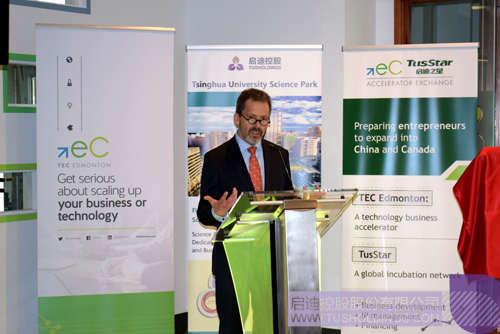 Chris Lumb在致辭中指出,要實(shí)現(xiàn)規(guī)模性擴(kuò)張,阿爾伯塔省必須走向全球。啟迪之星(埃德蒙頓)可以讓加拿大的企業(yè)更有效了解中國和進(jìn)入中國市場(chǎng)。